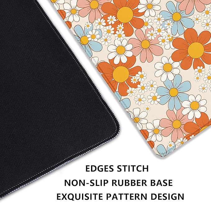 Vintage Floral Mouse Pad Daisy Desk Pad,Retro Flower Mouse Mat,Extended Gaming Mouse Mat,Stitched Edges Non-Slip Waterproof Rubber Base Mous Mat for Office Home Work Game Desk Pad(27.5X11.8 in)