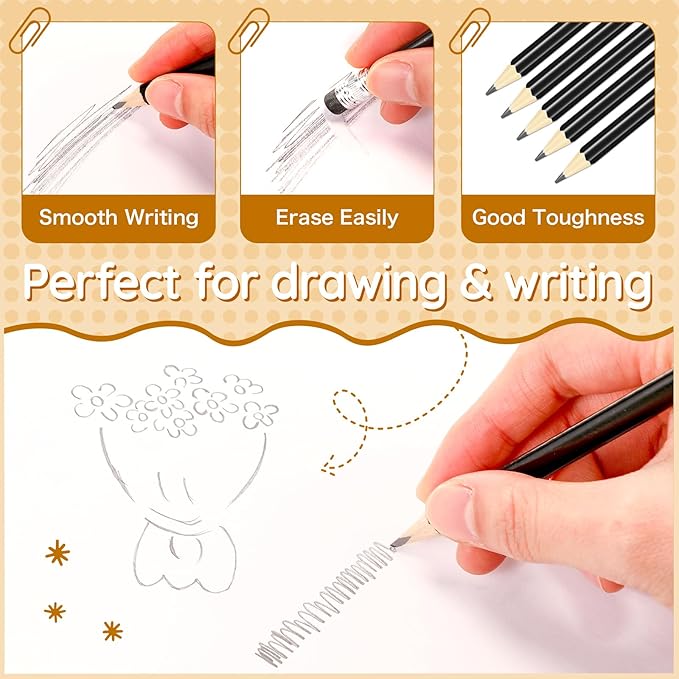 - Convenient and Easy to Use: designed keeping user convenience in mind, pencils with erasers arrive pre sharpened, so they're ready to use right out of the box; What makes them more convenient is the eraser tops, no need to carry extra erasers, making them suitable for quick note taking or creating art