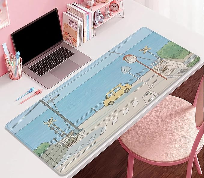 Cute Desk Mat Kawaii Anime Large Gaming Mouse Pad Cartoon Rabbit Desk Pad,Stitched Edges Non-Slip Waterproof Rubber Base Mous Mat for Office,Computer,Keyboard,Laptop and Home Desk Pad(27.5X11.8 in)