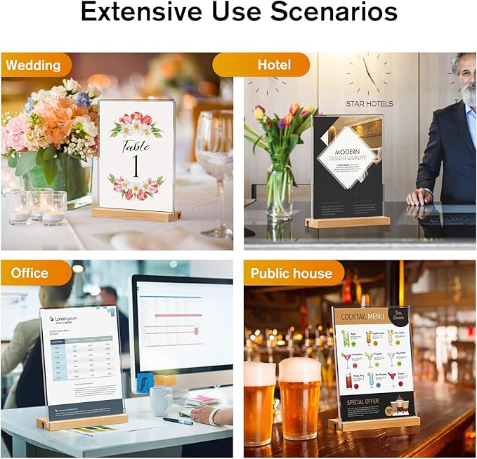 - T/L style sign holder:This sign holder 8.5 x 11 comes in two styles to suit your needs. For showcasing more content, you can choose the T-style, which allows for double-sided display. If you'd rather highlight just one side, the L-style display offers a more convenient and flexible option