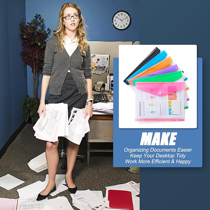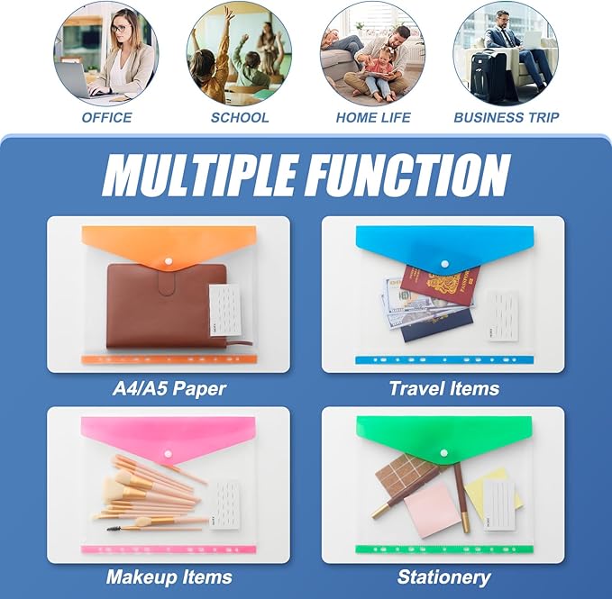 - 【Efficient Classify & Search】The Binder Pockets are transparent, and with snap button & label, you will keep contents visible and makes finding items so easy without opening your document pouch, help sort things out, find things quickly. Binder folder is a sensible investment for anyone who wants to make their life easier and more efficient.
