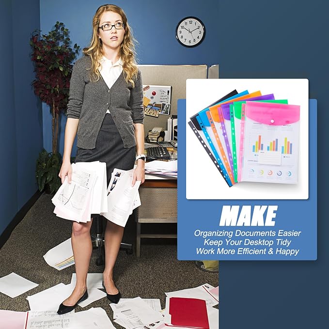 - 【Efficient Classify & Search】The Binder Pockets are transparent, and with snap button & label, you will keep contents visible and makes finding items so easy without opening your document pouch, help sort things out, find things quickly. Binder folder is a sensible investment for anyone who wants to make their life easier and more efficient.