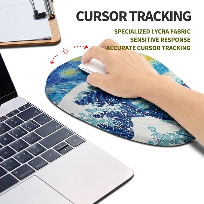 Hokafenle Ergonomic Mouse Pad Wrist Support, Terraced Slope Carpal Tunnel Wrist Pad for Mouse with Unibody Memory Foam, Wrist Rest Pain Relief Mousepad (Starry Night Sea Wave, 11.8x7.9 in)