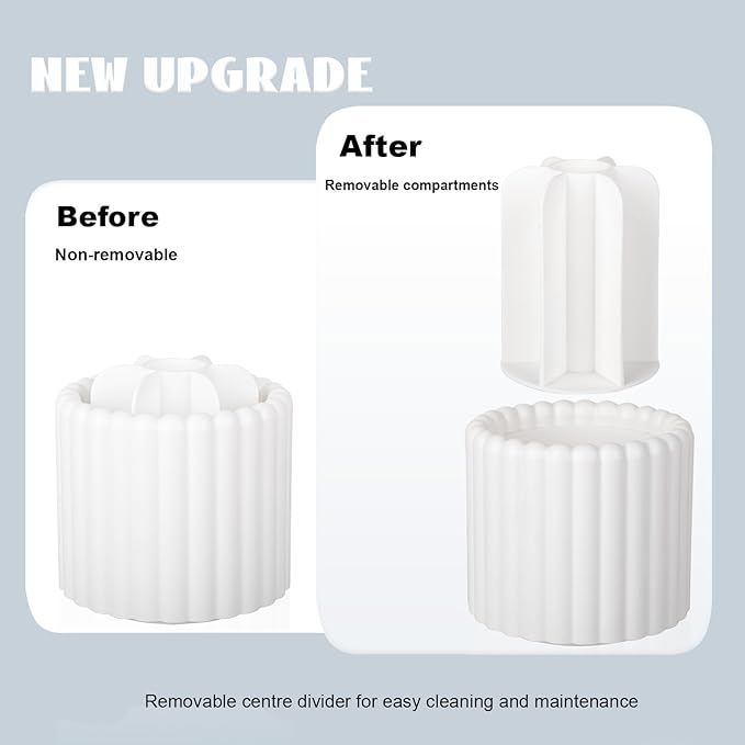 - SMOOTH ROTATING: The rotating base does not touch the countertop ( 0.35 inches above the countertop), and there are four non-slip rubber pads on the base, the makeup brush container cup will not move when rotating and rotates smoothly.