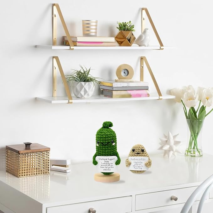CrazyHome Positive Potato, Emotional Support Pickle Combo | Handmade Crochet Positive Vegetables 2PCS Set - Potato, Mini Cucumbers | Cheer-Up, Motivational, Funny Desk Décor