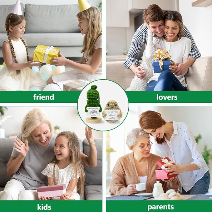 - This package features a wooden base and a delightful pair of crochet dolls: Emotional Pickled Cabbage and Positive Potato. Each doll is accompanied by a card carrying uplifting words, offering comfort during challenging times.