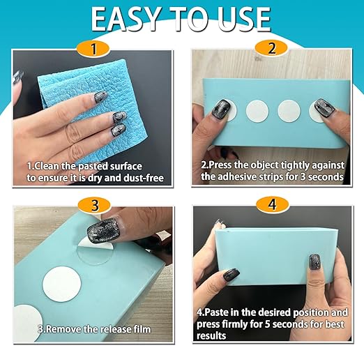 - Waterproof after application: After bonding on a dry surface, the mounting dots are not easily detached when exposed to water. it can be used in the bathroom and kitchen. No tools or nails needed, it stick hooks and shelves for you without damaging or dirtying your tiles
