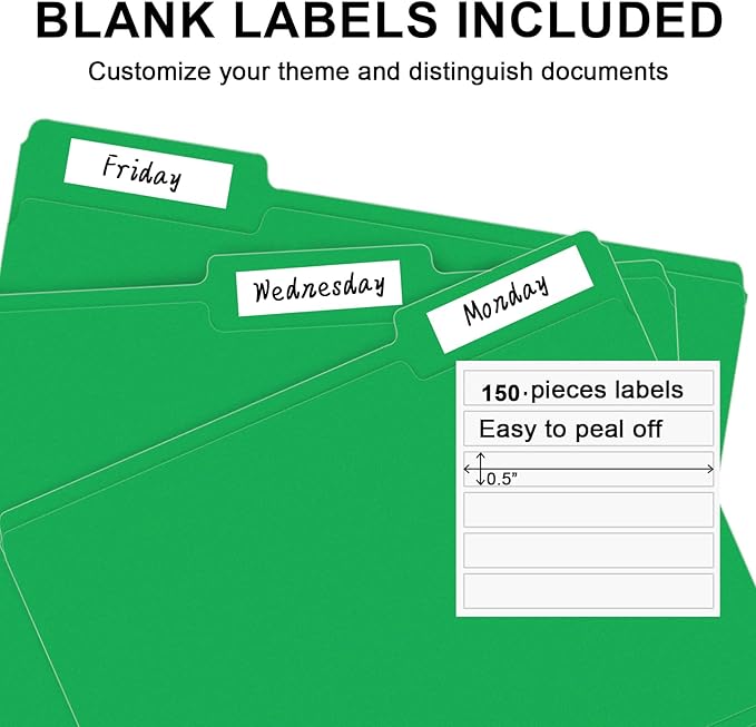 - PACKAGE INCLUDED: This bulk pack includes 150 letter size file folders (50 of each position) and 150 blank labels, idea for any home, office, or school project, providing you with plenty of storage space for all of your important documents