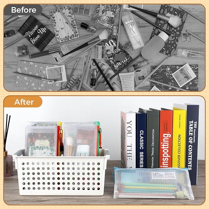 - 【Versatile Zipper Pouches】- For travelers, you can use it to store pencil, cosmetic and toiletries. For school office home and travle, it can help you organize and store stationeries, documents, memo book, receipts. For daily life, you can store toys, craft projects, headphones, etc