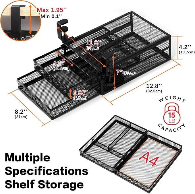 - Durable Under Desk Construction: Engineered with metal components and an optimized design, our drawer organizer guarantees enduring performance and deformation resistance. Enjoy smooth sliding drawers protected by specialized dust-proof mesh, built to last for your home office.