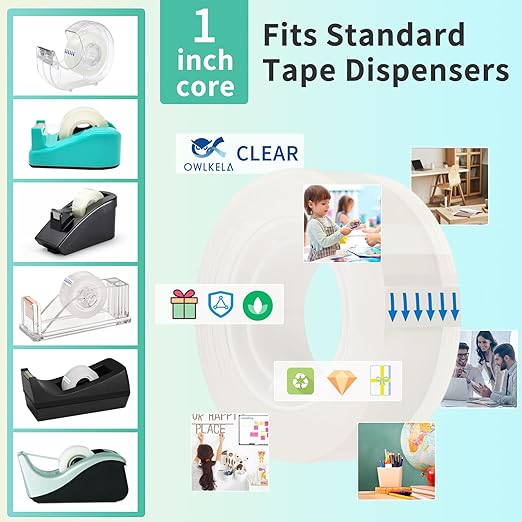 - What You Get: Includes 16 rolls clear tapes, you can use for a long time. Note: Before you choose our tapes, please make sure your dispenser fits for 1 inch core tape