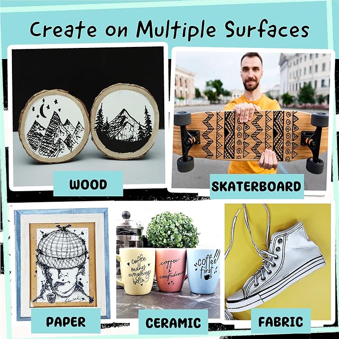 - Multiple Use - Get creative with DIY crafts using these black paint marker for canvas, black fabric marker, metal, porcelain, plastic, stones, polymer clay, wood, as acrylic paint pens for rocks painting, black paint marker for metal
