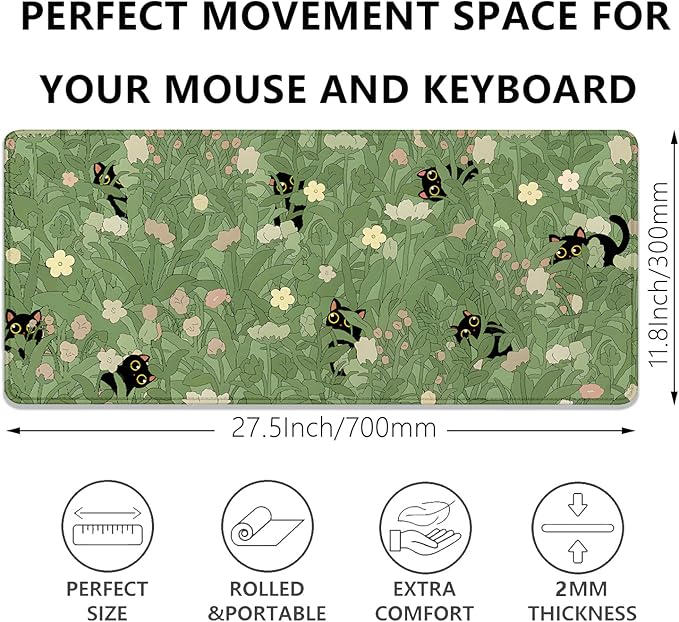 - ❀Extended Dimensions: 27.5" x 11.8" x 0.1" (700 mm X 300 mm), 2 mm thick. It will fit your desktop perfectly and provide the perfect space to move around, you can also use this extended mouse pad as office, gaming, keyboard pad, platform protector or desk pad, and for all types of mice and more.