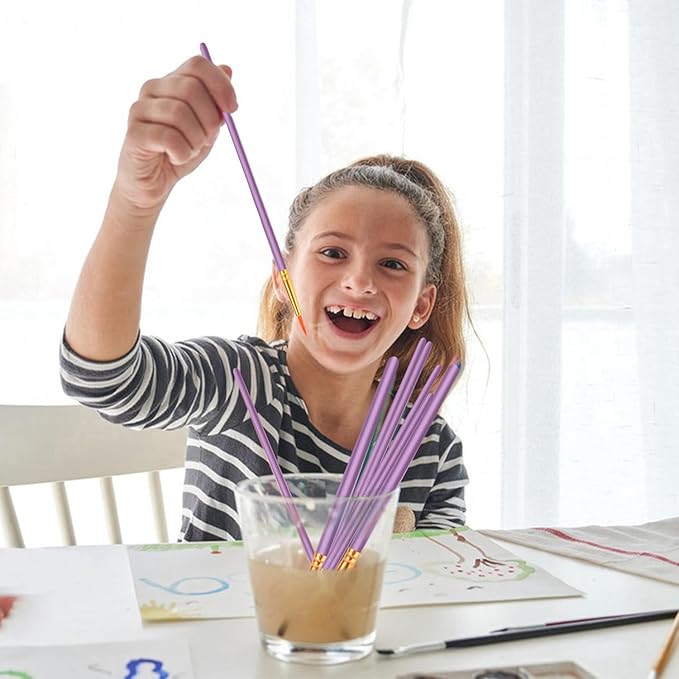 - 【10 Sizes of Paint Brushes】:Multi-functional Acrylic paint brush have various shapes,sharp flat angle shape, from coarse strokes to fine details, easy to use color multi-functional acrylic artist paint brushes,Suitable for students, teenagers, children and painters at all levels, a good painting brush supplies for friends and family who like painting!