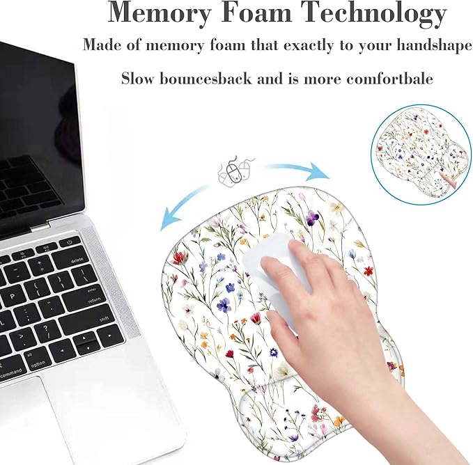 Floral Ergonomic Mouse Pad With Wrist Support | Comfortable Gel Wrist Rest for Computer and Laptop | Pain Relief Mousepad With Non-Slip PU Base for Gaming