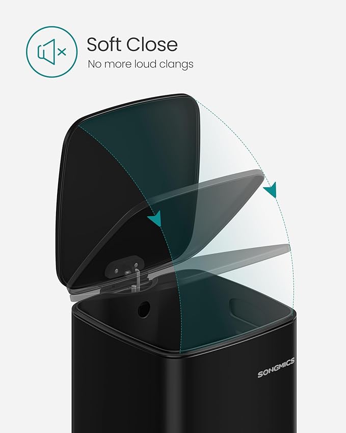 - Cierre suave y se queda abierto: Este basurero viene con una tapa que se cierra silenciosa sin golpe. Y, puede mantener la tapa abierta abriéndola manualmente a 90 ° para facilitar la eliminación de residuos