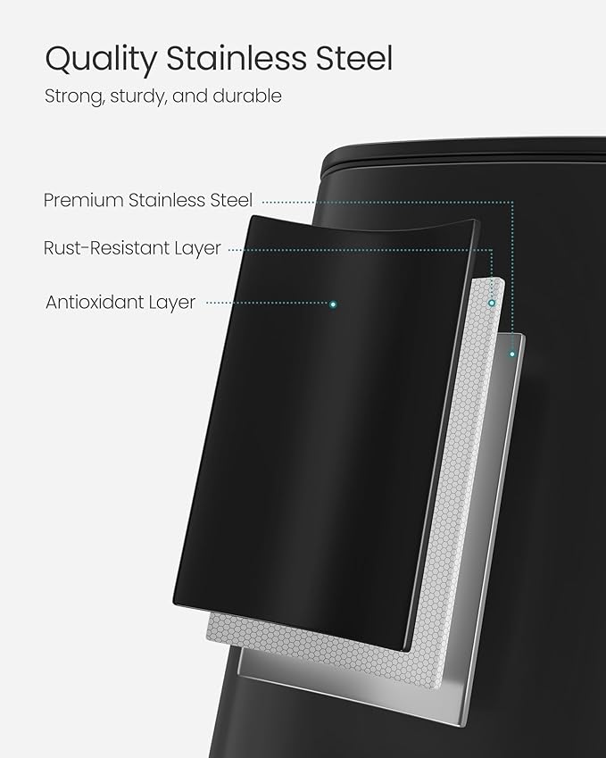 SONGMICS Kitchen Trash Can, 8-Gallon (30 L) Trash Bin, Stainless Steel Garbage Can, with Inner Bucket, Soft Close and Stays Open, Ink Black ULTB593B01