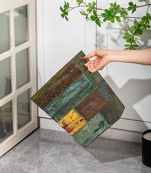 - CHARMING BOHO TOUCH –With a stunning distressed look and a variety of textures and colors, our wooden waste can creates a vintage boho charm, it is a unique and beautiful scenery wherever you place it, you will certain to get plenty of compliments.