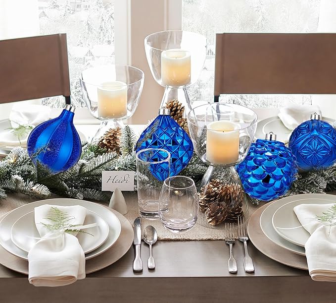 Hollyone 4.7 Inch Large Blue Christmas Ornaments 4Pcs Balls Ornaments Shatterproof Christmas Hanging Ornaments for Xmas Tree Decor with Hook for Wedding Holiday Party Wreath Home Decor (Blue, 120mm)