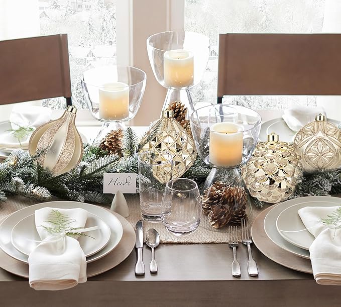 Hollyone 4.7 Inch Large Champagne Gold Christmas Ornaments 4Pcs Shatterproof Christmas Hanging Tree Balls for Xmas Tree Decor with Hook for Wedding Holiday Party Wreath Home Decor (Champagne, 120mm)