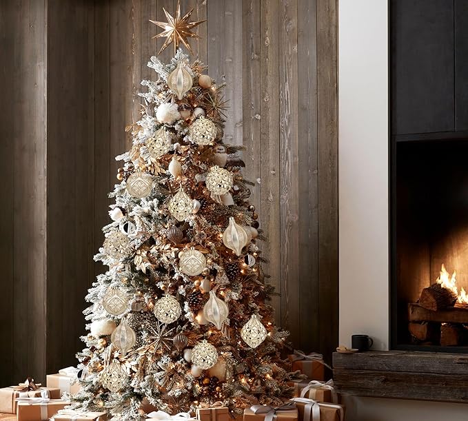 - šćORNAMENT SIZEć4 pcs 4.7"/120MM Variety of Shapes Plastic Christmas Balls. Tree balls with light weight and won't weigh down the Christmas tree branches. Exquisite tree baubles that create stunning Christmas theme and add stronger festive atmosphere.