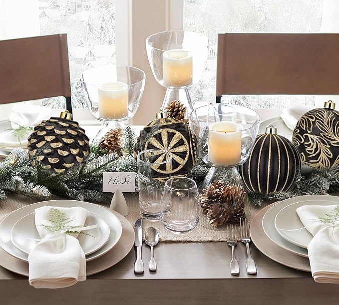 Hollyone 4.7 Inch Large Black and Gold Christmas Ornaments 4Pcs Christmas Tree Balls Shatterproof Christmas Ornaments for Xmas Tree Decor for Holiday Party Wreath Home Decor (Black & Gold, 120mm)