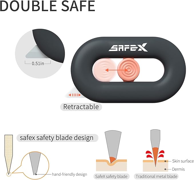 - 12mm safety box cutter head, that’s mini, quick and safe.