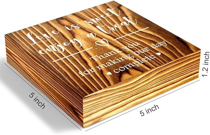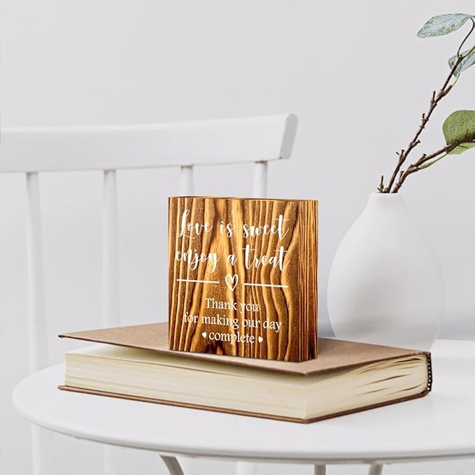 Love is Sweet Enjoy a Treat Wooden Box Sign Decorative Wedding Party Dessert Table Wood Box Sign Home Decor Rustic Square Desk Decor Sign for Shelf Burlywood