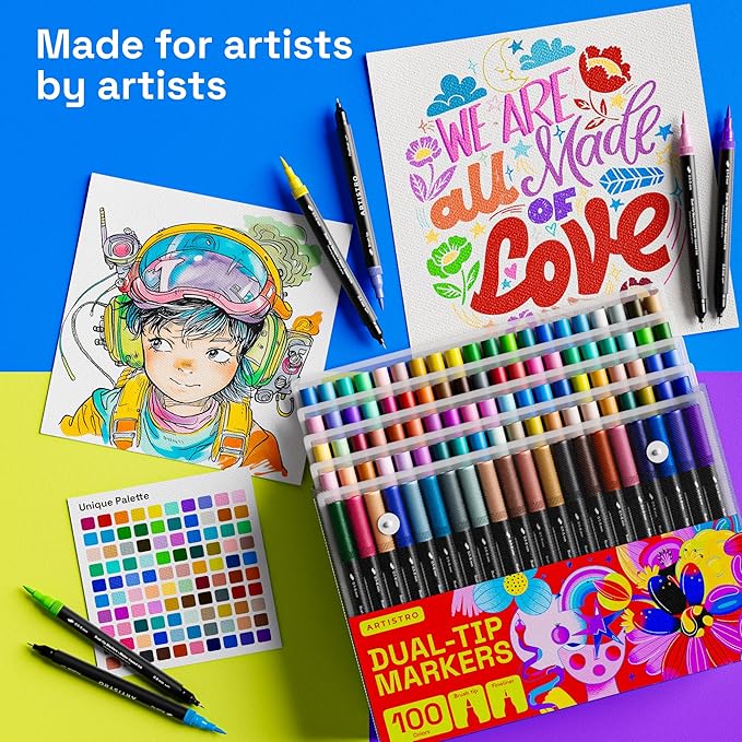 - HIGHLY PIGMENTED MARKERS: Each art pen is equipped with an easily coded pen barrel. The ink inside the artist pens is highly pigmented and spreads easily. The ink in the dual tip marker set is safe, non-toxic, and acid-free.