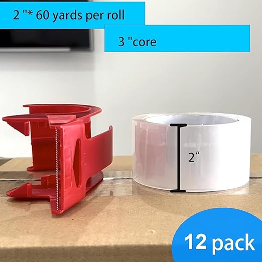 - Set: 12 rolls 2 inches X 60 yards transparent BOPP packaging tape total of 720 yards, with a dispenser.
