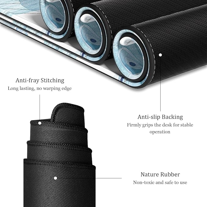 - Large and Perfect Size: The full desk mouse mat measures 32 x 16 inches, with 3 mm thickness, large enough for mouse to move all around and still has a plenty of space to accommodate your computer, laptop, keyboard and other desk items