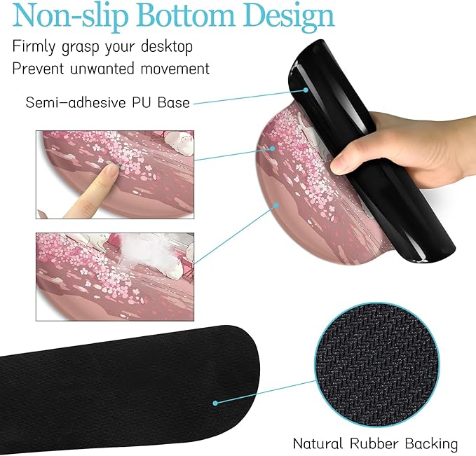 - Ergonomic Design: Our cherry blossom mouse pad set includes an ergonomic mouse pad with wrist support and a keyboard wrist support, which can provides a good touch and effective support for your wrist. Great for people who need to use a computer for long periods of time for office work or gaming