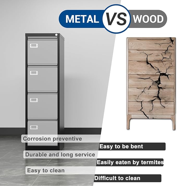 - A STURDY ADN DURABLE FILE CABINET - The whole cabinet is made of 0.8 mm metal plate, which is very strong, so that the whole cabinet can carry a lot of documents.The surface of metal cabinet adopts electrostatic spraying process, and the whole paint surface is smooth and never falls off, which ensures that the filing cabinet can be used for a long time.