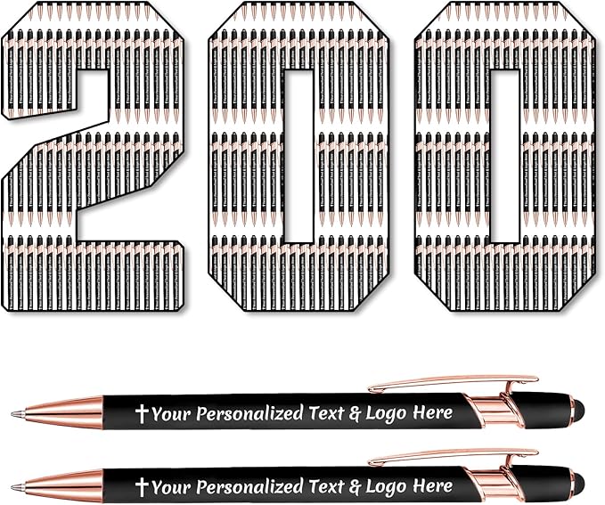 STREADVE 200 Personalized Custom Pens Engraved Writing Pen with Name Logo, Customized Promotional Items Stylus Pen Gifts for Men Women Realtor Nurse Wedding Business, Black