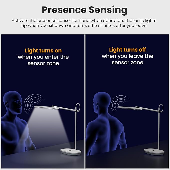 - Advanced & Rare Features: Enjoy gesture control, presence sensing (lights on when you sit down, off when you leave), night light, timer off, and auto-brightness adjustment. This led desk lamp will elevate your lighting experience