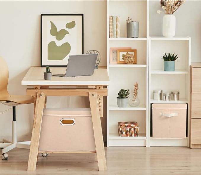 Voova Large Collapsible Storage Bins with Lids, 3 Pack Stackable Line Fabric Cube Storage Organizer, Foldable Closet Storage Boxes Baskets Containers with Cover for Clothes Bedroom Office Home,Apricot