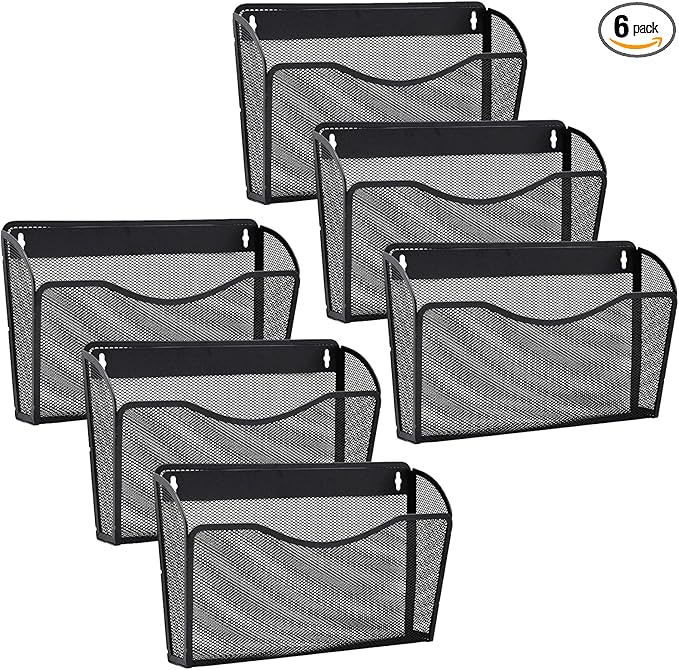 6 Pack Wall File Organizer, Mesh Hanging Metal Vertical Wall Mounted File Holder for Office/Home