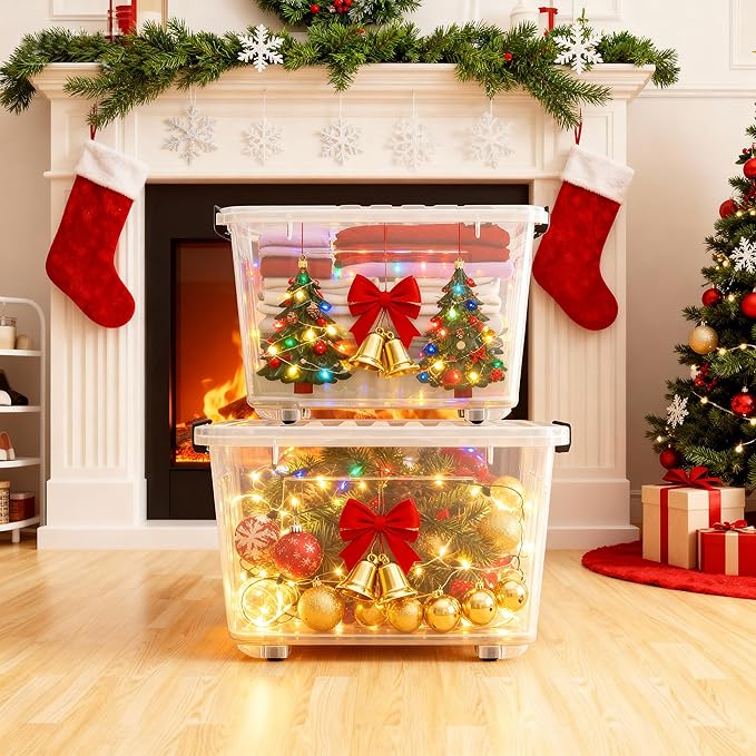 Nazhura 72 Quart Plastic Storage Bin, Stackable and Nestable Storage Boxes with Clear Lids and Secure Latching Buckles, Large Storage Container (Clear, 72Quart-4Pack)