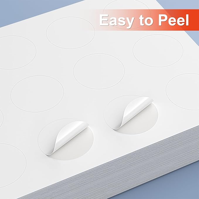Methdic 2" Diameter High Visibility Printable Round Labels,Matte White,360 Customizable Blank Stickers