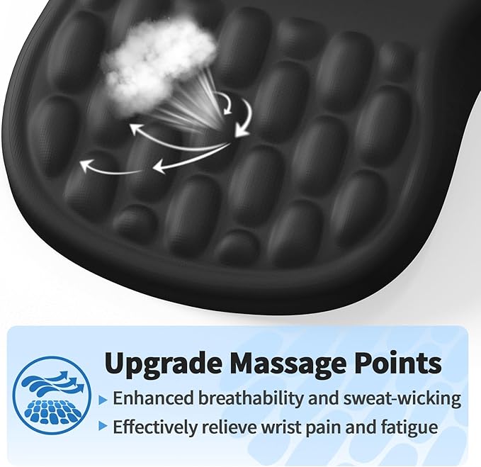 - Ergonomic Mouse Pad: The innovative ergonomic 8-degree slope and massage bump design perfectly support the wrist and palm. Massage bump design can effectively relieve wrist pain and fatigue, improve carpal tunnel syndrome (CTS), strengthen the air circulation between wrist and mouse pad, prevent sweating, and keep your wrist in the most comfortable state.It's your best choice of desk mouse pads.