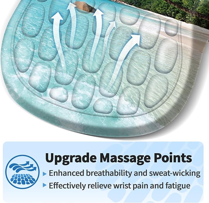 - Ergonomic Mouse Pad: The innovative ergonomic 8-degree slope and massage bump design perfectly support the wrist and palm. Massage bump design can effectively relieve wrist pain and fatigue, improve carpal tunnel syndrome (CTS), strengthen the air circulation between wrist and mouse pad, prevent sweating, and keep your wrist in the most comfortable state.It's your best choice of desk mouse pads.