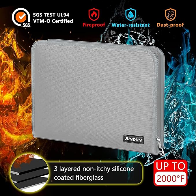 - PREMIUM MATERIALS: Secure your documents with our fireproof file organizer. Crafted from three-layered, non-scratchy fiberglass coated with silicone, it can withstand temperatures up to 2000℉. It's also passed rigorous testing (SGS Test: UL94 VTM-0 Certified) and offers high water-resistance for unexpected spills. Keep files neat and accessible with ease using our accordion file organizer. Elevate your protection today!