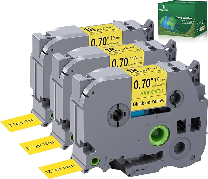 - Package included: 3-Pack Compatible with Brother PTouch TZe-641 TZ-641 TZe641 TZ641 18mm 0.7 Inch Black on Yellow Label Maker tape