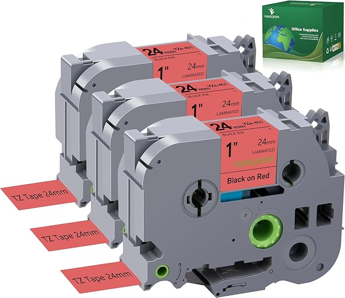 - Product Size: Width: 24mm 1 inch, Length: 26.2 feet (8m) for each 24mm 1 inch laminated red label tape
