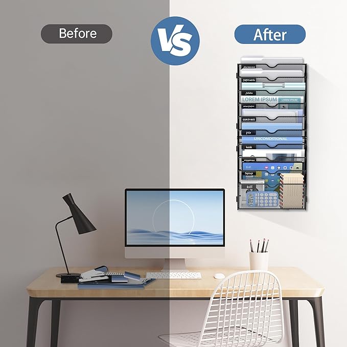 - [Space Saving] This 10-tier mail organizer will be your savior by taking full advantage of vertical space on the wall or over the door. It is a great way to keep your desktop tidy and give you a more comfortable workplace no matter in office, home, classroom or dorm.