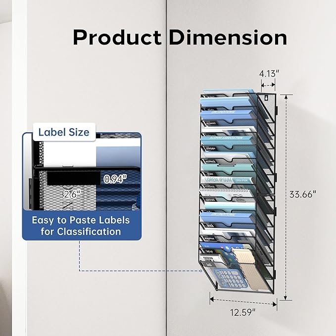 - [Space Saving] This 14-tier mail organizer will be your savior by taking full advantage of vertical space on the wall or over the door. It is a great way to keep your desktop tidy and give you a more comfortable workplace no matter in office, home, classroom or dorm.
