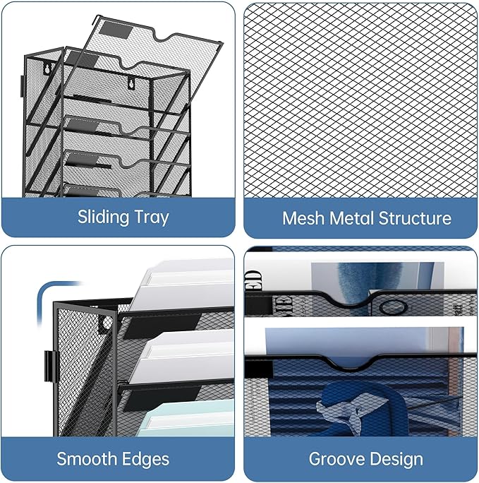 - [Clever Design] You can easily archive bills, contracts or homework by convenient label panel. 14 curved file dividers keep documents accessible yet hidden. Our mesh paper organizer is easy to clean as well. It will be a great addition to your workspace.