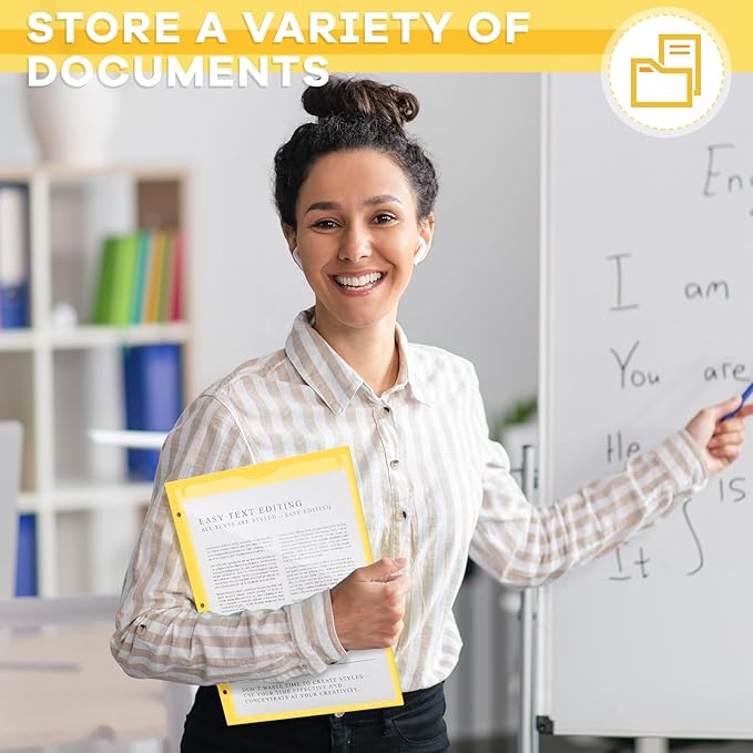- Easy Organization: each plastic pocket folder features with 3 holes in one side, which enables you to put it into a standard 3 ring binder to organize loose documents, and clear front pocket of each folder help to store other items, giving you a comfortable using experience