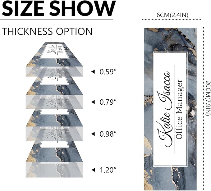 - 【Customize Your Professional Identity】Click "Customize Now" to design your unique personalized name plate. Choose from elegant art fonts and modern designs, then enter your name, title, or any custom text and date. Create a beautiful, elegant, and well-made desk name plate that makes you stand out in any office setting.