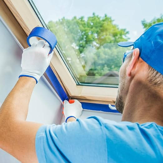 - 【Excellent Quality】Our painters tape is made of high-quality blue crepe paper,which can be easily torn off by hand without tools.Safe,and non-toxic.It also has characteristics such as UV & sunlight resistance,strong adhesion,no penetration,and durability,making it perfect for both indoor and outdoor use.